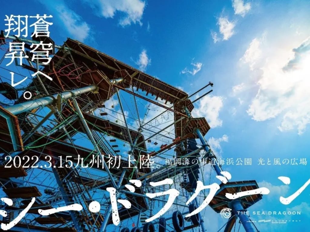 2024年9月7日(土)迄、絶景展望デッキから博多湾と玄界灘を一望できる国内最大規模のアスレチックタワー「シー・ドラグーン」(海の中道海浜公園・光と風の広場)では、天空回廊(展望台)から夕陽を眺める「シー・ドラグーン マジックアワー」が開催中です。